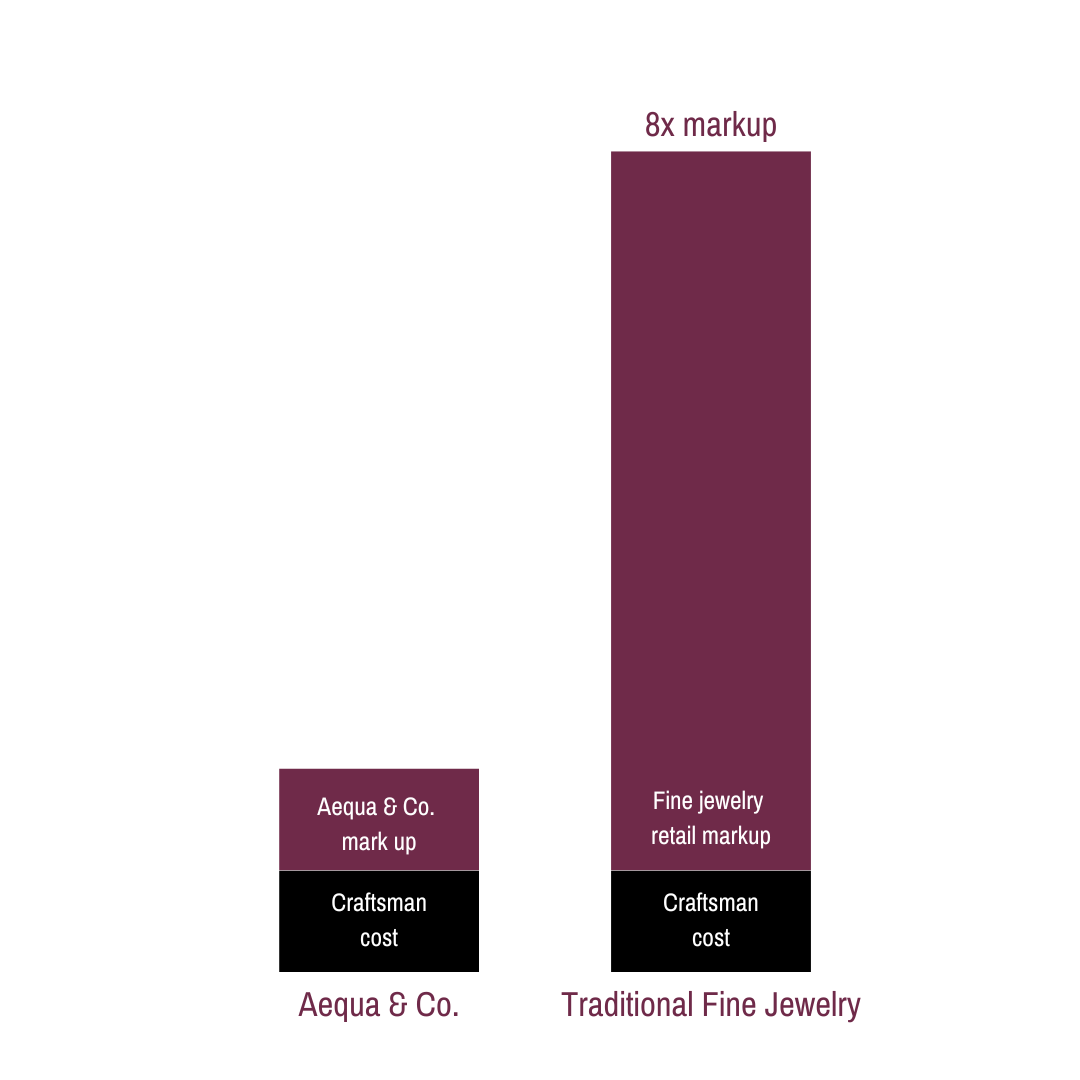 Introducing Aequa & Co., where we've eliminated middlemen and extortionate markups, allowing us to offer industry-changing prices. The outcome is remarkable: fine jewelry that is both affordable and uncompromising in quality. We're here to revolutionize the industry by removing intermediaries and embracing fair, transparent pricing.